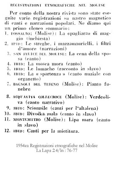 studiosi e le registrazioni musicali molisane del 1954. Omaggio a |