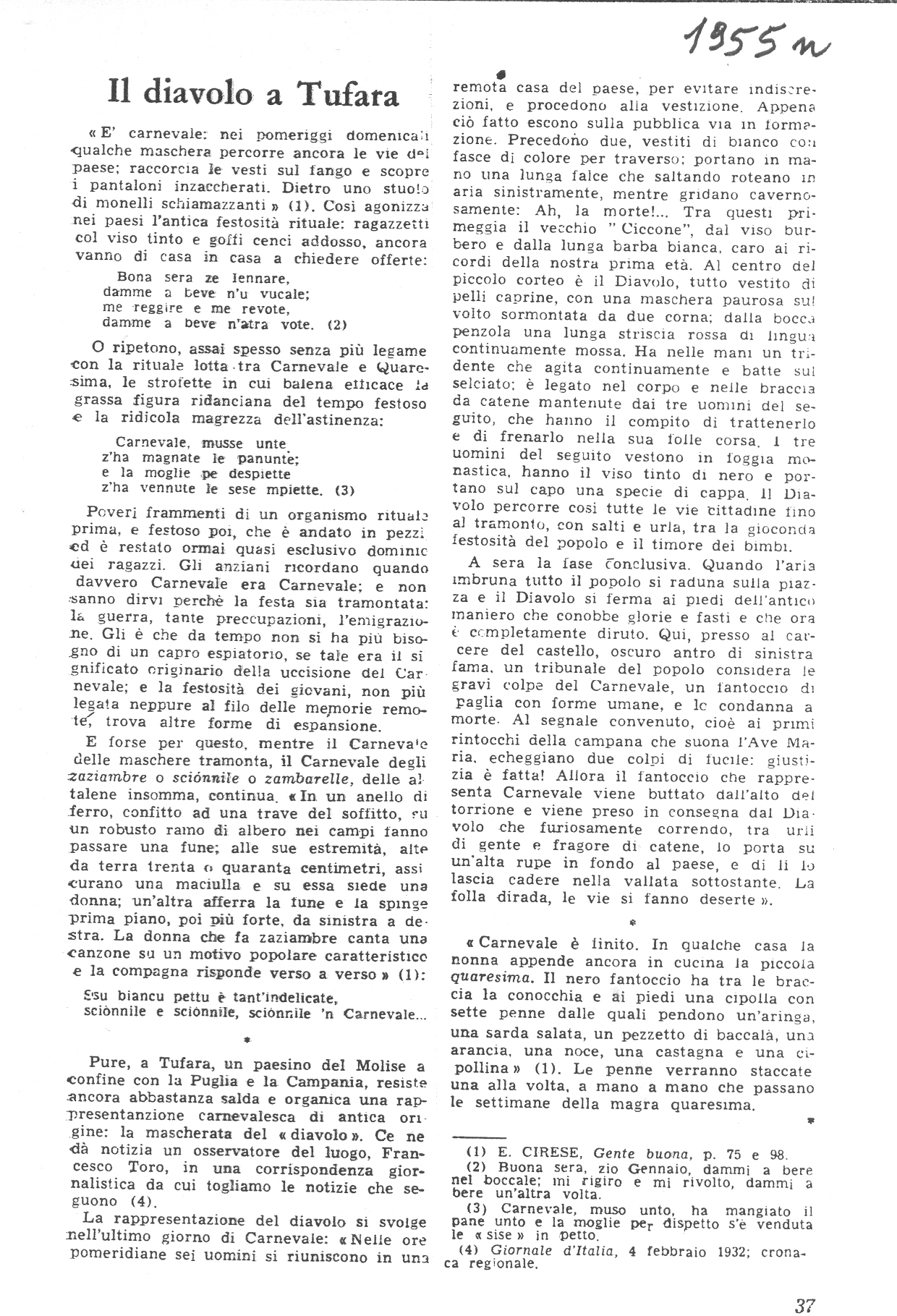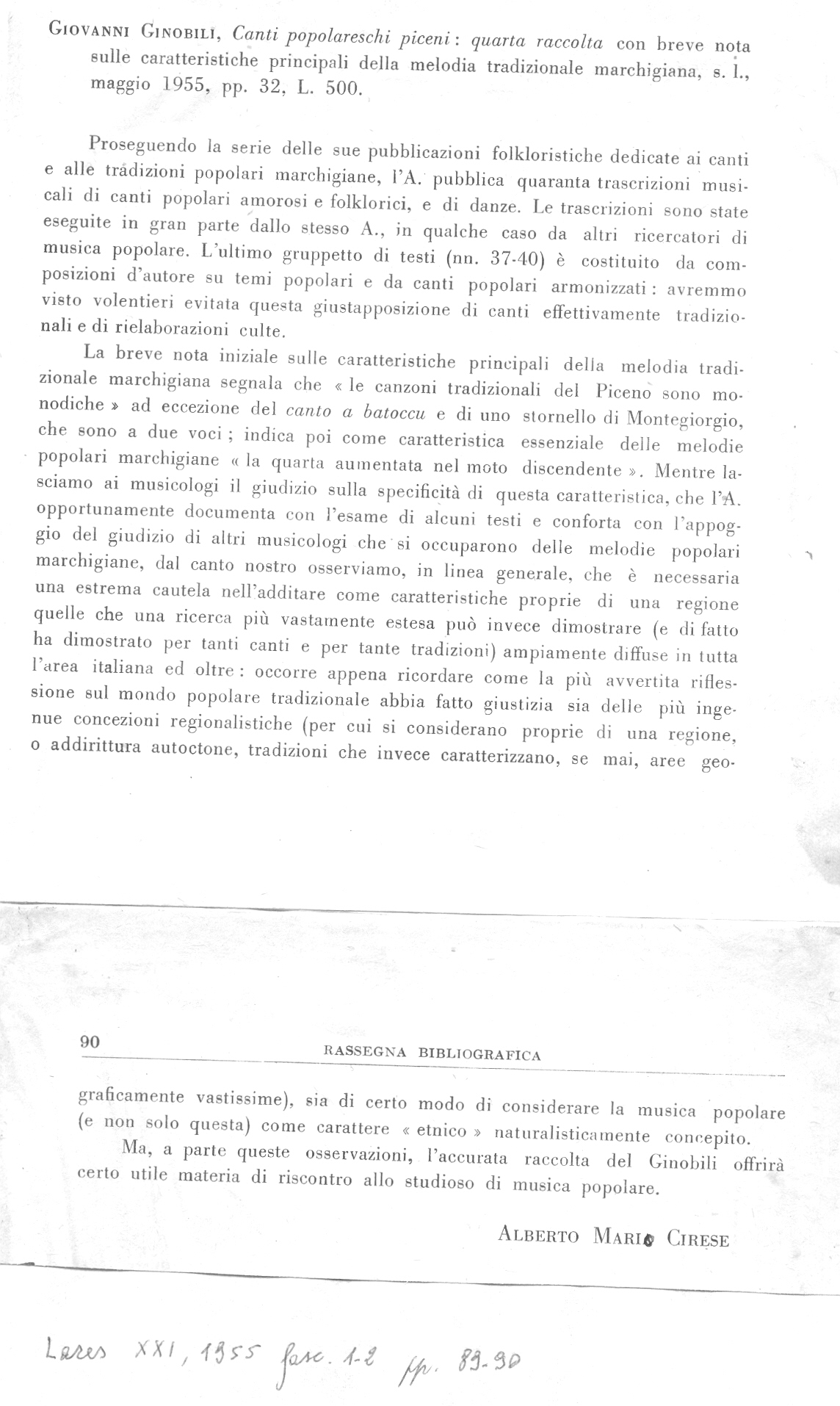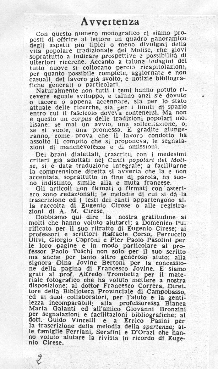 proposito di canti popolari. Risposta a ‘Il Popolo Sabino’ - Progresso